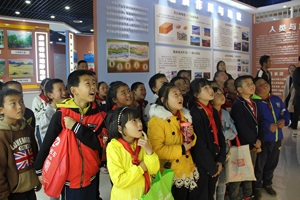 城市学院志愿者带领高家屯小学的同学们参观地球科学与环境教育实践基地