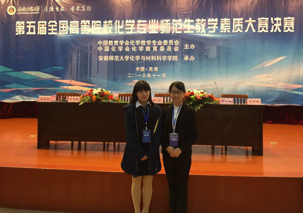 第五届全国师范生教学素质大赛获奖学生匡毅和张永琳在颁奖现场