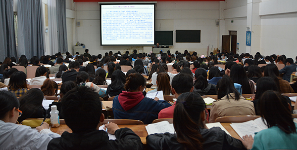 4月19日晚, 学校党委委员、纪委书记徐显敏为第8期党员发展对象上专题党课。