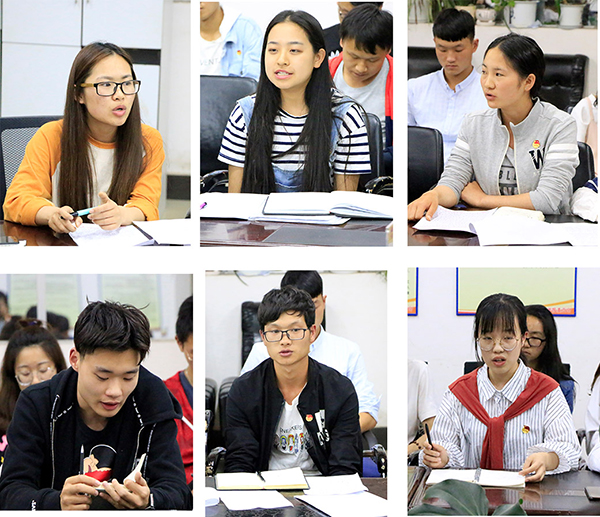 会上,学生骨干们围绕“爱国、励志、求真、力行”四方面的要求,结合自身的工作、学习积极发言,进行分享。学生会主席王倩同学说:“作为青年学生,我们将牢记习总书记的教诲,做到学而信、学而思、学而行,把习近平总书记的讲话精神践行到具体的实践中去,努力成长为合格的社会主义建设者和接班人。”组织部李多同学说:“作为一名学生干部,应当和师者一样当好模范,踏踏实实做好服务工作,将学习和工作结合,德智体美全面发展。”最后,校团委邓吉飞副书记作总结发言,他希望学生骨干按照习总书记的要求,承担起新时代青年的使命担当,践行“爱国、励志、求真、力行”,努力学习,扎实工作,积极发挥模范带头作用。做到学起来,学原文、学原著、学原理;传起来,用实际行动影响带动身边人;研起来,加强调查研究,做好工作研判;实起来,真抓实干,让每项工作落小落细落实。