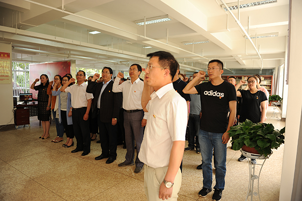 在开放仪式上,机关党总支组织人事党支部、办公室档案馆党支部、图书馆党支部60余名党员出席并重温了入党誓词。