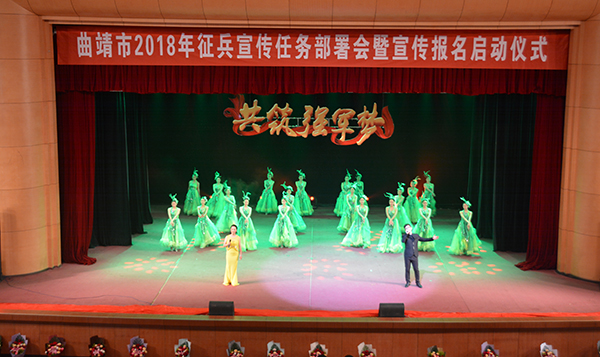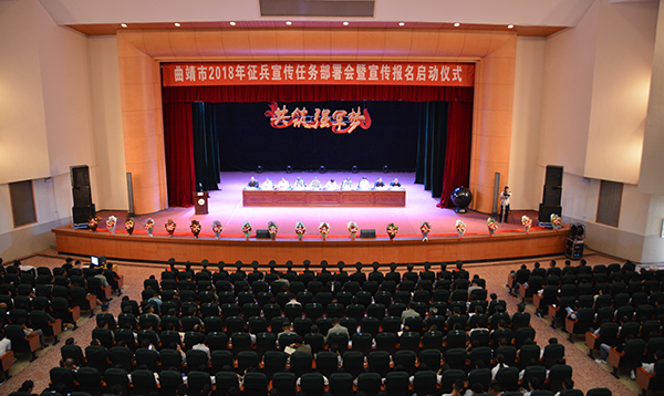 5月16日,曲靖市2018征兵宣传任务部署会暨宣传报名启动仪式在bat365学生会堂隆重举行。中共曲靖市委常委、曲靖市军分区政委袁顺钦大校,曲靖市人民政府罗世雄副市长,曲靖市军分区司令员贾荣成大校,bat365校长浦虹、党委副书记王志刚,及市征兵领导小组成员单位的领导、曲靖(市区县)武装部领导、各兄弟单位领导和师生代表等,共一千余人参加。曲靖军分区司令员杨凤兵主持启动仪式。