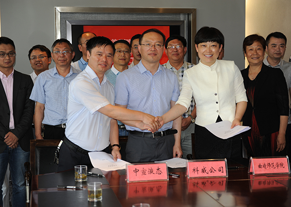 云南中宣液态金属科技有限公司董事长杨应宝、总经理杨泽俊一行,学校科技处、信息工程学院液态金属研究团队、磁性材料及器件研究中心相关人员参加签约仪式。