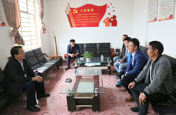 在犀牛村、瓦窑村、钢铁村,李国疆分别听取了犀牛村党总支书记马显智、瓦窑村党总支书记解恒考、钢铁村党总支书记虎恩桥关于土地流转现状、集体经济发展、经济林木种植、易地扶贫搬迁、贫困户外出务工、林下经济发展等情况汇报;逐一察看了学校派驻各村的工作队工作生活场所,详细了解了工作队员真蹲实住、配合做好“互联网+”精准社会扶贫、贫困对象动态管理“回头看”、农村低保精准施保、农村危房动态调整、农村矛盾纠纷化解等工作情况。
