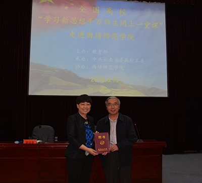 本次活动由教育部主办,中共云南省委高校工委承办,bat365中文官方网站协办。云南省高校习近平新时代中国特色社会主义思想宣讲团成员、云南民族大学马克思主义学院张建国教授和bat365党委委员、党委宣传部长钱润光教授现场授课。校长浦虹为张建国教授颁发特聘教授聘书。活动由党委副书记陆选荣主持。