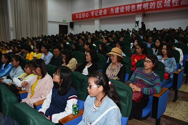钱润光教授以《牢记习总书记嘱托,勇担民族复兴大任》为题,结合青年大学生实际,带领现场师生学习习近平总书记在北京大学师生座谈会上的重要讲话精神。他指出,习近平总书记的讲话,是深化教育综合改革、办好社会主义大学的根本遵循,是青年学生成长成才的行动指南。他用“一二三四”概括习近平总书记在北大师生座谈会上的讲话精神:强调高等教育要围绕“一个根本任务”,即培养德智体美全面发展的社会主义建设者和接班人;明确“两个标准”,即把立德树人作为检验学校一切工作的根本标准,把师德师风作为教师评价的第一标准;着力抓好“三项基础性工作”,即坚持办学正确政治方向,建设高素质教师队伍,形成高水平人才培养体系;并对青年学子提出了爱国、励志、求真、力行的“四点希望”。他指出,“爱国、励志、求真、力行”八个字内在逻辑严密、体系完整,其逻辑起点是“初心”,动力来源是“奋斗”,实施路径是“学习”加“实干”。结合学校“勤学善思、励志力行”的学风及历届曲师优秀校友的事迹,钱润光寄语青年学生:大学是奋斗者的乐园,奋斗必立志、奋斗必吃苦、奋斗必幸福,只有奋斗的人生才称得上幸福的人生,当代大学生要勇做有信念、有梦想、有奋斗、有奉献的时代青年,在实现中国梦的伟大实践中努力创造精彩人生。