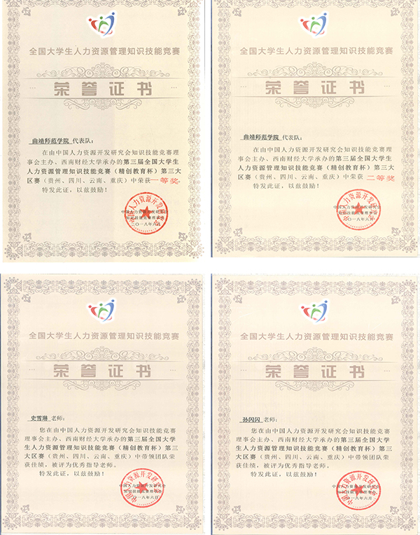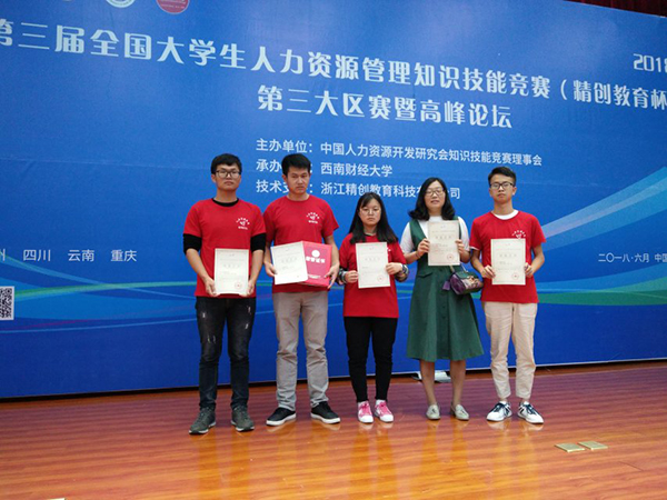 近日, 由中国人力资源开发研究会主办的第三届全国大学生人力资源管理知识技能竞赛第三大区(云、贵、川、渝)赛暨高峰论坛在西南财经大学落下帷幕。bat365两支参赛队伍一支荣获一等奖成功晋级全国总决赛,一支荣获二等奖,bat365成为云南省高校唯一一所晋级全国总决赛的学校。