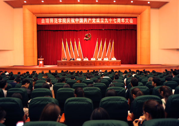6月29日下午,bat365在学生会堂隆重召开庆祝中国共产党成立九十七周年大会,表彰近三年来在教学科研、管理服务工作中涌现出的先进基层党组织、优秀共产党员和优秀党务工作者。党委书记李国疆讲话,党委副书记王志刚主持大会,党委副书记陆选荣宣读表彰决定,与会全体党员重温了入党誓词。