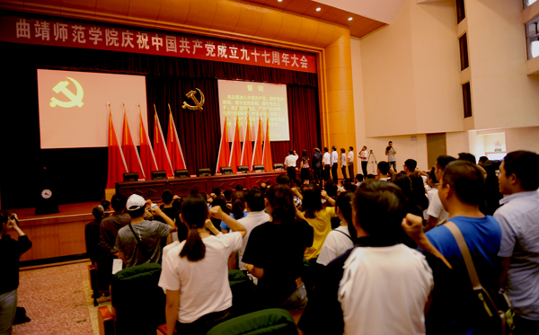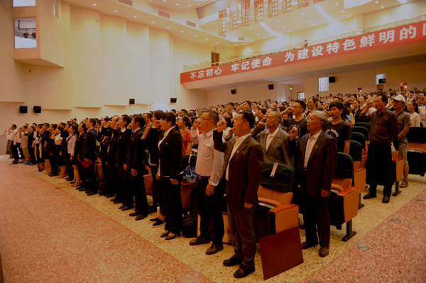 会上,由党委副书记王志刚领誓,全体与会党员重温了入党誓词。大会在庄严的国际歌声中落下帷幕。各党总支书记、直属党支部书记、基层党支部书记、各部门主要负责人及师生党员代表800余人参加大会。