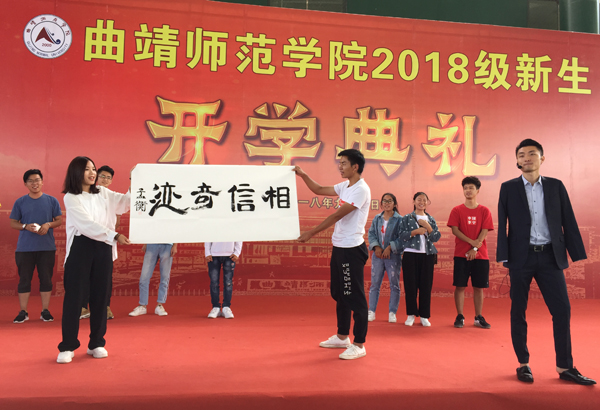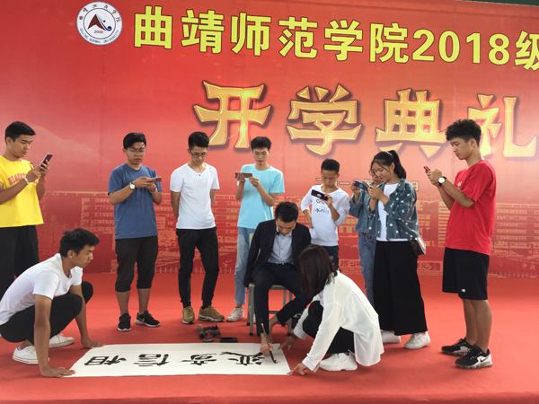 最后,杨孟衡现场用脚书写“相信奇迹”四个大字送给同学们,现场响起经久不息的掌声。