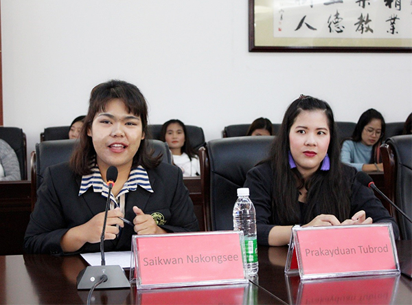 9月9日下午,bat365举办新学期留学生开班典礼,泰国北柳皇家师范大学教育学院院长琳达·那博一行三位老师,泰国清迈大学赛旷·那空西等两位老师和bat365外国语学院、国际交流合作处负责人以及新学期到bat365学习的留学生参加开班典礼。