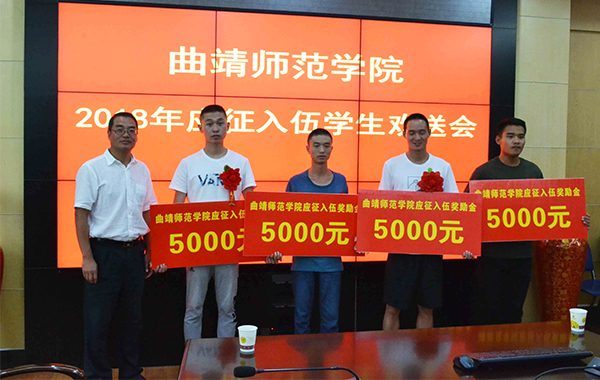 26名应征入伍学生、部分学生家长及各学院党总支书记参加欢送会。