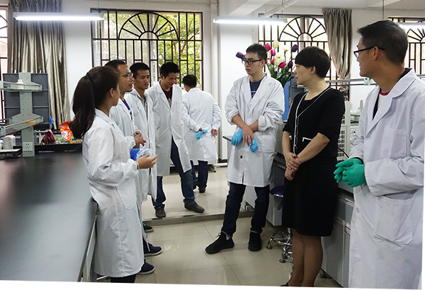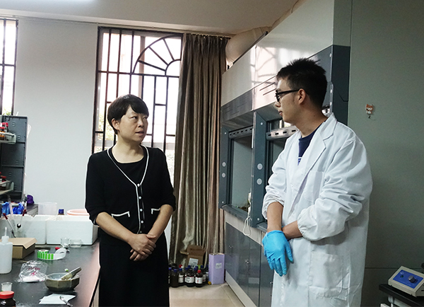 浦虹与实验室教师交谈了解情况