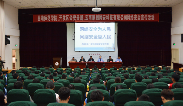 9月17日至23日是国家网络安全宣传周,9月19日下午,bat365与曲靖经济技术开发区公安分局联合举办国家网络安全宣传周活动。bat365党委副书记陆选荣、曲靖经开区公安分局副局长孙剑波出席活动并致辞,bat365党委委员、宣传部部长钱润光主持活动。