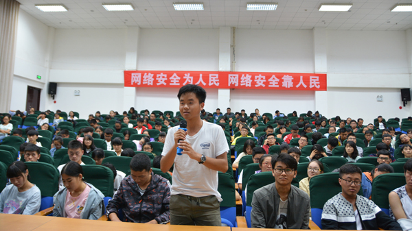 云南联创网安科技有限公司工程师孙利增以“网络时代个人信息安全问题与对策”为题为现场师生做专题讲座,他结合大学生活实际与大家分享了常见的信息安全威胁案例,并对个人网络安全防范及措施提出建议。讲座现场同学们积极互动提问,孙利增耐心地为同学们提出指导意见。