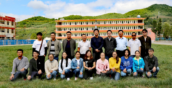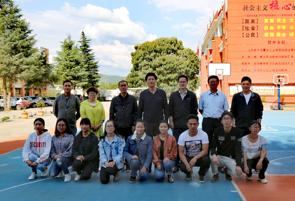与在马路乡顶岗的11名学生合影留念