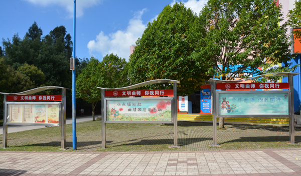 为在全校努力营造“人人关心创建、人人支持创建、人人参与创建”的浓厚氛围,学校通过“两微一端”等新媒体和校报、宣传栏、展板、LED显示屏、黑板报、手抄报等多种方式进行文明城市创建集中宣传,现已建成大型公益广告46块、专题宣传栏28个,张贴宣传海报120份,编出黑板报300余块。同时,全校18块LED显示屏每天滚播文明城市创建标语、视频;广播站设置文明城市创建专栏,每天定时播送创文信息、先进典型;学校官网及微信公众号等新媒体设置专栏,推送文明城市创建系列内容。