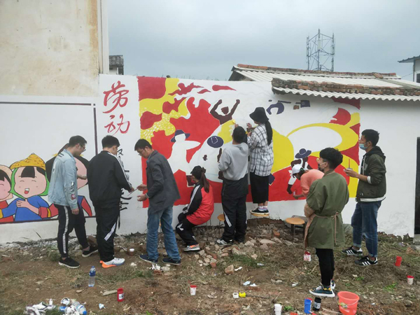 美术学院绘画宣传队到西山、大海哨社区进行文明城市创建相关题材的墙体绘画
