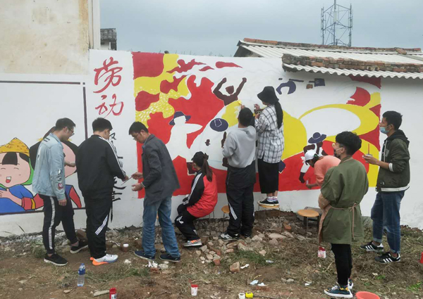 美术学院志愿者为西山社区进行墙体美化