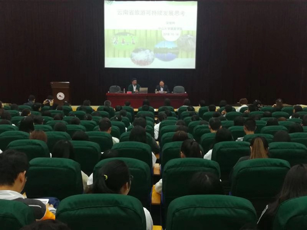保继刚说,相对正常的市场需求与供给侧结构失衡的矛盾、旅游项目的投资对旅游地产的过度依赖、旅游资源开发与本地居民相对贫困的矛盾、部分精品景区节假日环境超载严重等问题呼唤旅游市场的理性回归,基于此,云南省的旅游市场以远程市场为主,具有自然景观与民族风情的天人合一、历史文化与生态资源的高度融合、气候资源优势凸现形成独特竞争力等优势,旅游地空间组合良好,有利于形成多个国际性旅游目的地。为此,保继刚建议,继续保持和发挥自然景观与民族风情天人合一的优势,尤其要保护好少数民族文化的独特性,合理利用自然景观和气候资源优势;关注社区利益,提高社区在旅游发展中的收益,真正做到旅游减贫、旅游脱贫;总结教训并警惕外部资本开发可能带来的负面效应,真正走上可持续发展之路。保继刚的讲授风趣幽默、深入浅出,视角独到、视野开阔,使在场师生对云南未来旅游发展的方向和旅游者、开发者的行为产生了深刻的反思,给广大师生留下了深刻的印象。
