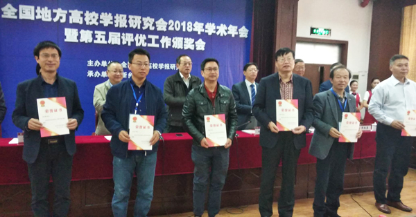 据悉,《bat365中文官方网站学报》获得全国地方高校优秀期刊奖,“铜商文化研究”栏目获得全国地方高校学报名栏奖,朱谷生教授获全国地方高校学报优秀主编奖,崔萍获全国地方高校学报优秀编辑奖。此外,朱谷生老师撰写的《以十九大精神为指导、不断提高bat365学报办刊质量》获全国地方高校学报优秀编辑学论文三等奖。