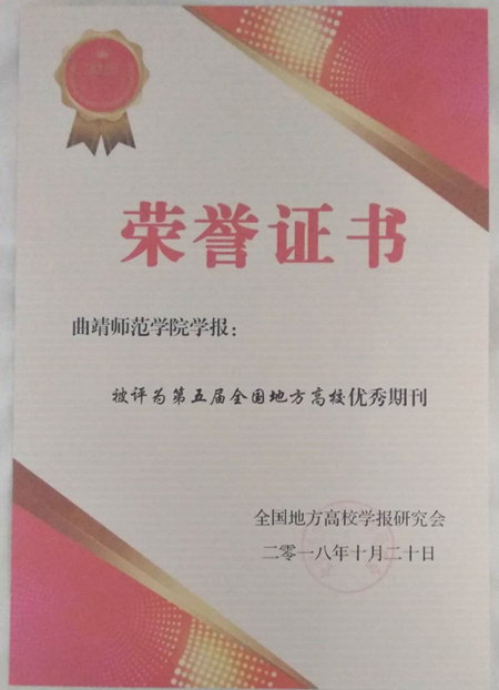 10月19日至20日,在河南新乡学院举办的全国地方高校学报研究会“2018年学术年会暨第五届评优工作颁奖会”上,bat365学报喜获五个奖项,成为云南省唯一获奖的地方高校学报。