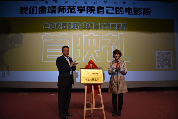杨于明在致辞中说,“七彩校园影院”旨在充分发挥电影在培育和践行社会主义核心价值观、建设共有精神家园方面的作用,巩固主流舆论阵地,加强高校文化建设。通过“七彩校园影院”这个平台,将有更多的优秀电影作品被带入大学校园;同时,它更承载着提升我省高校学生人文素质教育,逐步实现与北上广乃至国际接轨的重任。他期待着与各位老师、同学们携手,带给广大在校师生更丰富的电影盛宴,把曲靖师院的校园影院打造成为云南省高校影院中的典范。