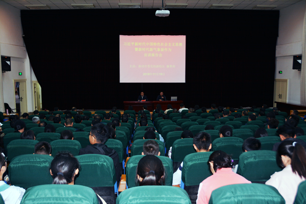 报告中,滕黎南结合理论与实践、历史与现实、国内与国际,深入浅出地为师生阐释了习近平新时代中国特色社会主义思想的精髓要义,以及怎样学和学什么的问题。