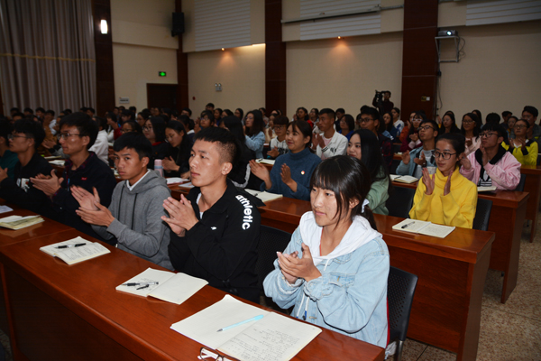“今天的中国,干事创业的环境非常好,广大青年进一步成长的空间更加广阔,青年大学生担负着光荣的使命,你们正在参与历史,创造历史。”赵正富从党始终重视培养、选拔和使用年轻干部为切入,结合改革开放以来中国发生的翻天覆地的变化、全面从严治党的重大意义,告诉同学们,“打铁还需自身硬”,国家为青年提供了公平成长的制度保障,这个拼真才实学的时代既是机遇,又是挑战,只有努力强大自己,才能勇立时代潮头。
