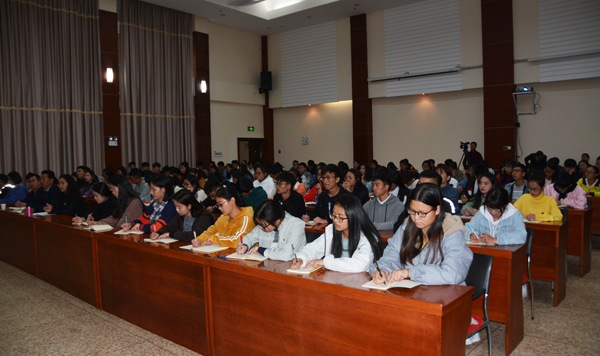 11月21日下午,中共曲靖市委副书记、市委宣传部长赵正富到校作形势政策报告,和青年大学生谈成长,话梦想。报告会由党委书记李永勤主持。