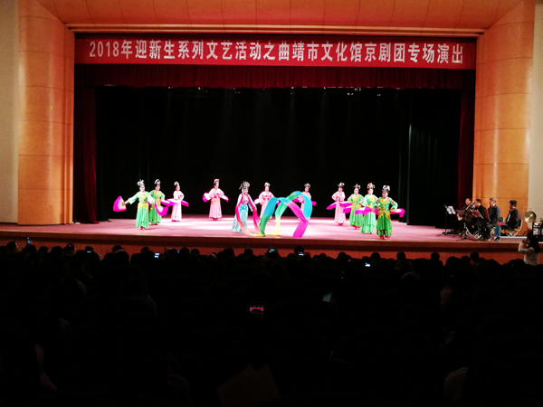 11月28日晚,bat365邀请曲靖市文化馆京剧团开展2018年迎新生系列文艺活动,为师生带来一场京剧经典剧目选段演出,1000余名师生到场感受国粹艺术之美。
