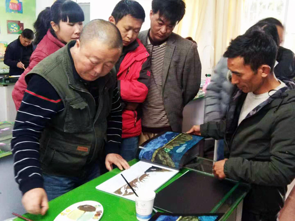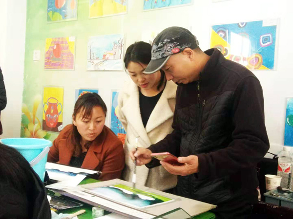 文艺志愿者美术学院王富祥副教授在为学员示范