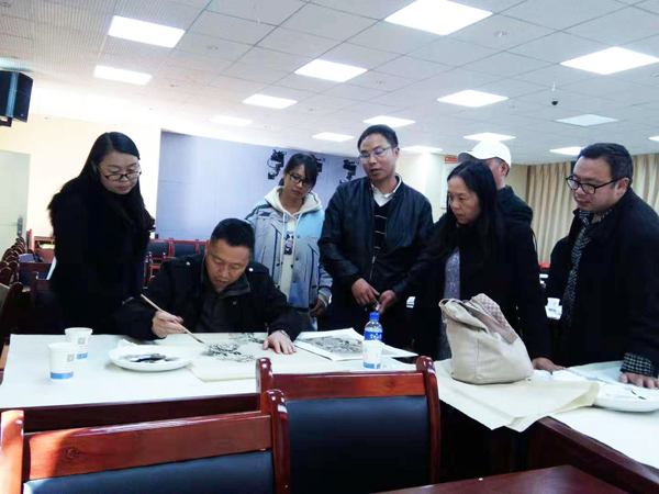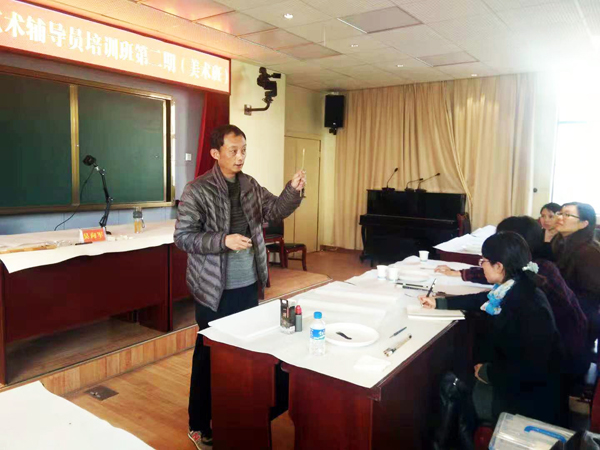 文艺志愿者美术学院吴向军副教授在为学员示范