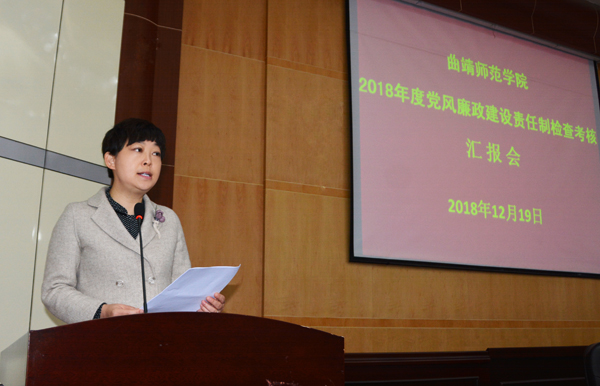 李永勤围绕落实全面从严治党主体责任、坚持立德树人正确政治方向,直面存在问题、抓严抓实2017年党风廉政建设责任制检查考核反馈问题的整改工作,全面履行纪委监督责任,存在问题及整改措施四个方面,汇报了学校2018年度落实党风廉政建设责任制工作情况。