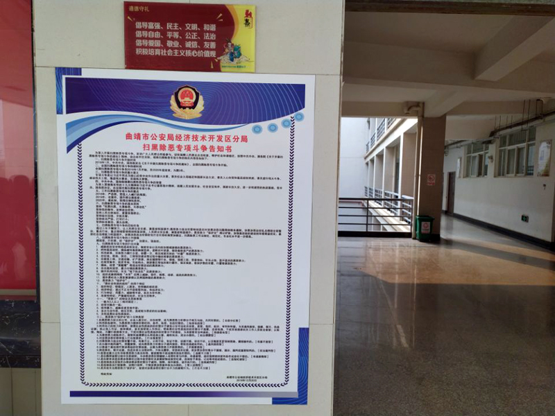 在学校重点区域张贴扫黑除恶专项斗争告知书
