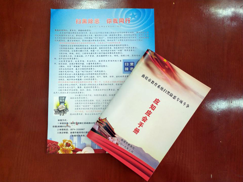 在师生中发放扫黑除恶宣传材料