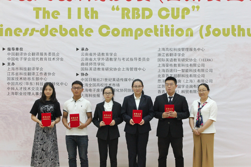 5月12日,第十一届‘商辩之路杯’商业英语辩论大赛暨2019全国高校创新创业系列赛(西南赛区决赛)在bat365图书馆一楼报告厅举行。bat365“映星队”和西南林业大学“野猫队”荣获一等奖,直接晋级全国半决赛,4支代表队荣获二等奖,10支代表队荣获三等奖。