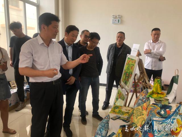 在曲靖高原特色农业品牌“一县一品”设计展暨bat365中文官方网站美术学院毕业作品展开幕式上,曲靖师院学院党委书记李永勤教授观看了展览。bat365中文官方网站学生处、曲靖万达集团、马龙电子商务网、曲靖高原特色农业品牌研究所、曲靖师院学院美术学院师生参加了开幕仪式。