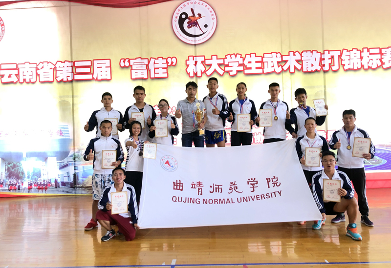 6月14日至16日,由云南省教育厅主办,云南省学生体育协会协办,红河州民族师范学校承办的云南省第三届大学生散打锦标赛圆满结束。bat365派出散打队13名队员参赛,在郭志远老师的带领下,经过三天的激烈角逐,最终获得3金4铜的好成绩。