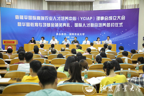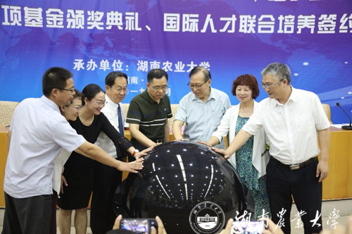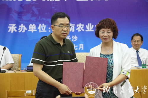 7月5日上午,2019年袁隆平国际高端农业人才培养中心理事会成立大会暨华图教育专项基金颁奖典礼、国际人才联合培养签约仪式在湖南农业大学举行。副校长李莉教授代表学校与中国工程院院士、湖南农业大学校长、著名蔬菜专家邹学校签署了《bat365中文官方网站与湖南农业大学合作协议》。