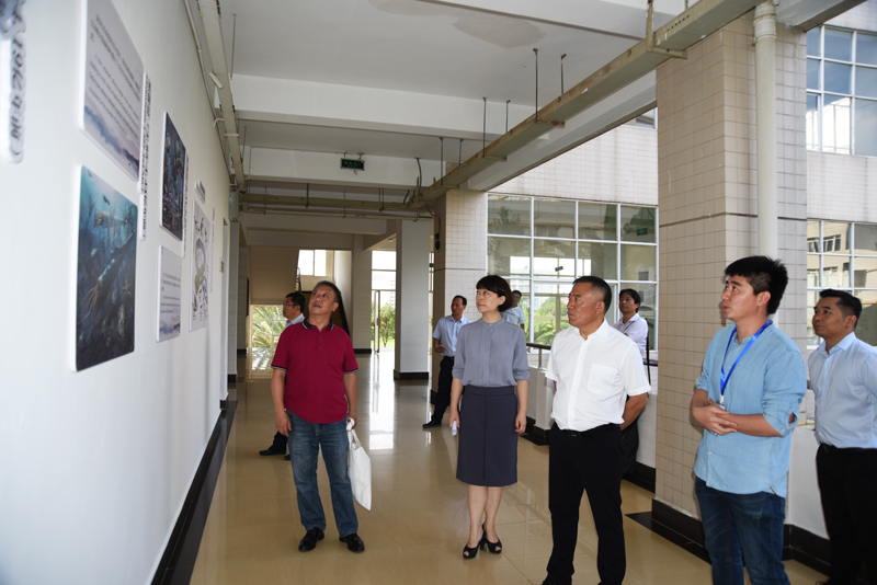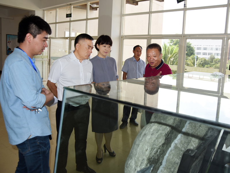 黄太文一行走访了自然历史文化研究中心CT重建与VR实验室、酸处理室、化石标本室、组织学实验室、化石展览室,参观了巨型精美维管植物化石、脊椎动物演化史展板,并到生物资源与食品工程学院水果深加工中试车间,与正在做实验的学生交流。