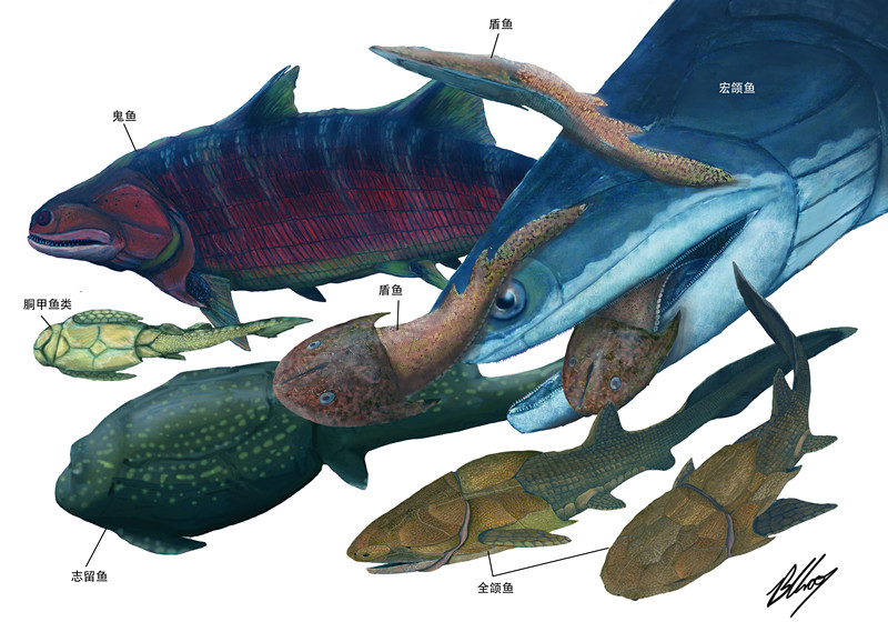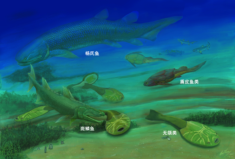 云南早泥盆世西屯脊椎动物群复原图(约4.1亿年前)
