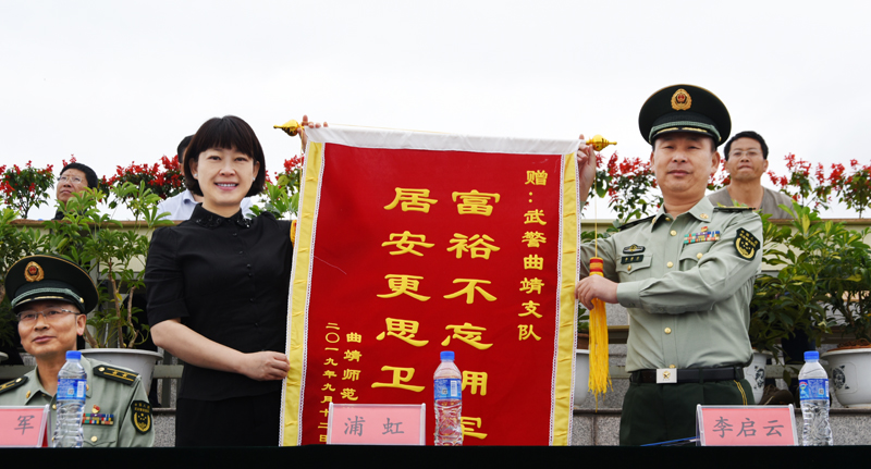 校长浦虹代表学校向武警曲靖支队赠送锦旗