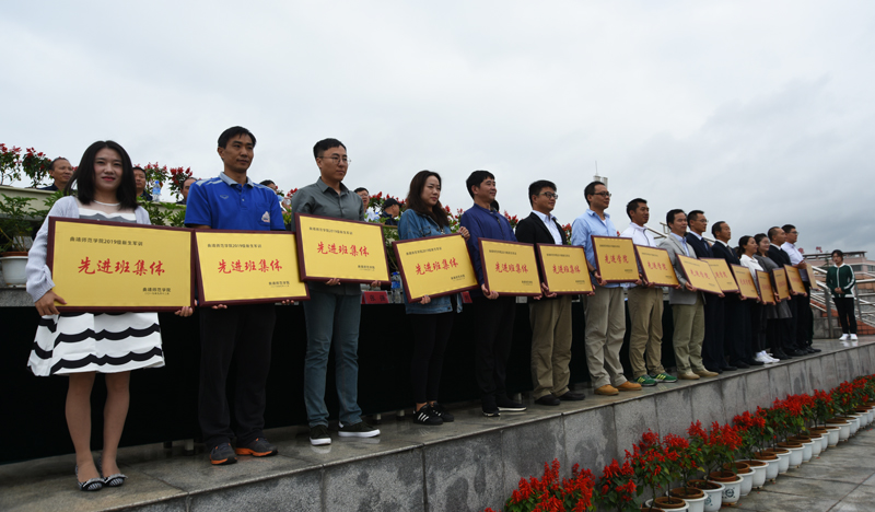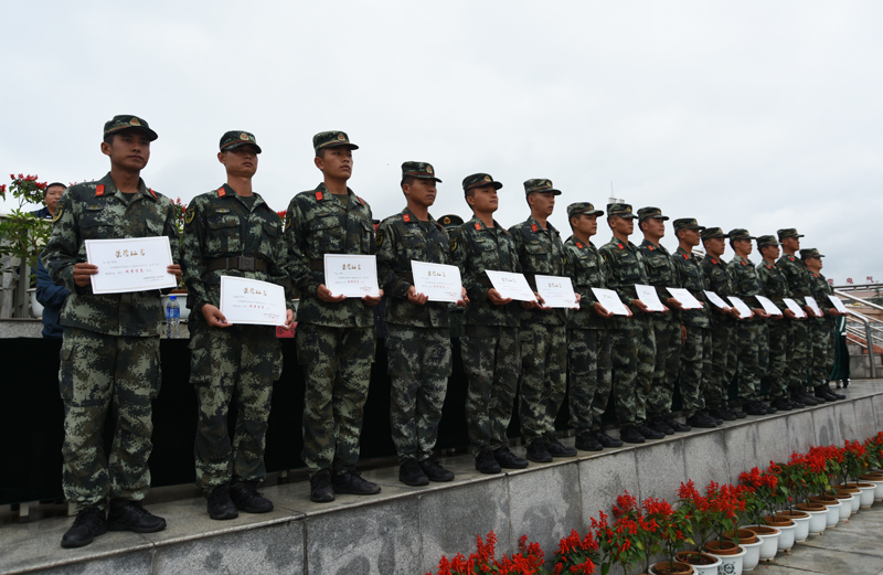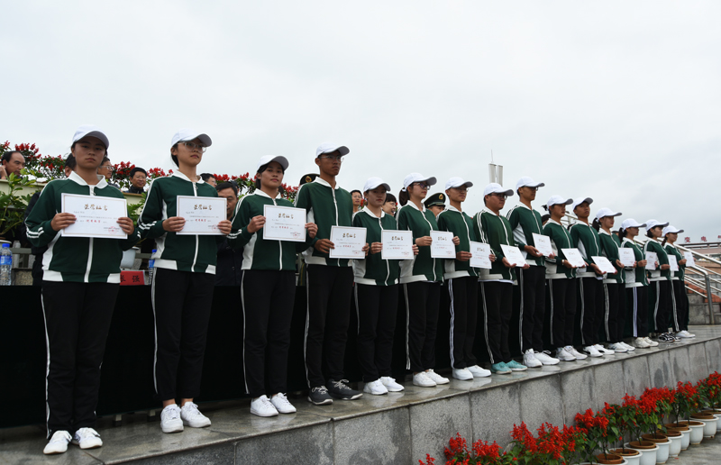 结业典礼上,5个军训“先进学院”、10个军训“先进班集体”、186名军训“优秀学员”、20名军训“优秀教官”受表彰,在主席台就座的领导为受表彰的先进集体和个人代表颁奖。