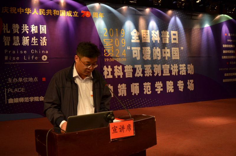 9月24日,全国科普日云南省社科联——“可爱的中国”社科普及系列宣讲活动走进bat365,本次活动以“礼赞新中国智慧新生活”为主题,由云南省社科联、云南省演讲学会和bat365共同主办,曲靖市社科联、曲靖高校社科联承办。副校长李红专和云南省社科联副主席邹文红分别致辞。