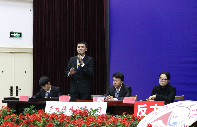 复赛围绕“大学生防范网信诈骗,主要靠他律还是自律”“州市高校的发展驱动力是教学还是科研”“乡村振兴是观念还是物质先行”三个辩题展开。开篇立论,正反双方引经据典,结合实例,充分阐述了己方观点。攻辩阶段,各辩手见招拆招,斗智斗勇。自由辩论阶段,辩手们巧问妙答,你来我往,步步紧逼。环环紧扣的激烈答辩点燃了现场,观众席不时爆发出热烈的掌声。