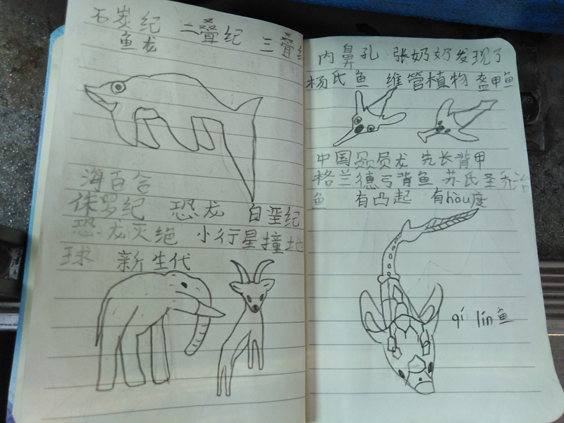 这个想法得到了中国科学院张弥曼、朱敏等古生物学家的支持。在曲靖师院自然历史文化研究中心,曲靖市第二小学的110名小学生了解了脊椎动物演化史、鱼类演化史、曲靖鱼化石种类等重要科学问题,知道了曲靖是人类鱼形祖先的起源地,是4亿年前人类远祖的发祥地,纷纷表示吃惊,内心充满了自豪感。第一次看到这么多化石,孩子们眼中闪烁着兴奋和求知的渴望。在西屯化石保护区,孩子们将发现的化石捧在手中,不断观摩,如获至宝,一边参观,一边记录,并将看到的鱼化石画下来。