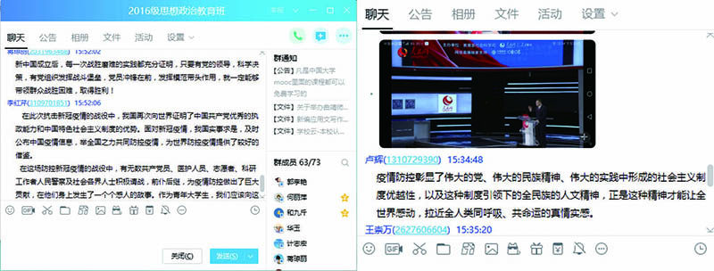 思政大课在bat365师生中引起强烈反响,热议纷纷。马克思主义学院陈惠敏教授说:“中国共产党领导中国人民众志成城抗击疫情,用铁的事实证明中国共产党的领导和中国特色社会主义制度的显著优势。作为一名思想政治理论课教师,必须坚定信念、围绕立德树人根本目标,理直气壮讲好好思政课,有理、有据地引导学生从抗击疫情的过程中自觉树牢‘四个意识’、坚定‘四个自信’、做到‘两个维护’,并用实际行动助推中华民族的伟大复兴!”“在以后的《毛泽东思想与中国特色社会主义体系概论》教学中,我们将结合抗“疫”典型故事,广泛开展爱党、爱国、爱社会主义教育,进行敬畏自然、热爱生命教育,加强社会责任感和担当精神教育,重视感恩教育和爱的教育。”余丽梅老师说。