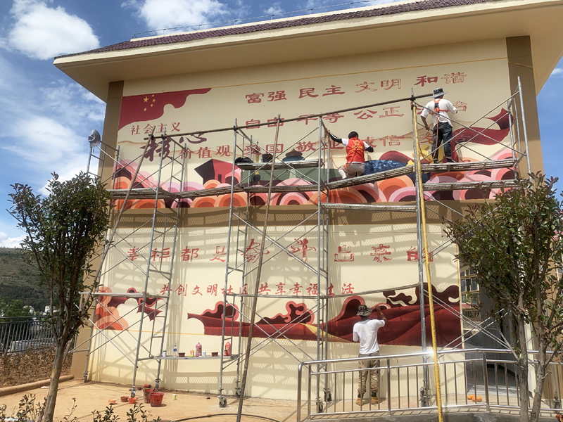 美术学院师生进行墙体绘画