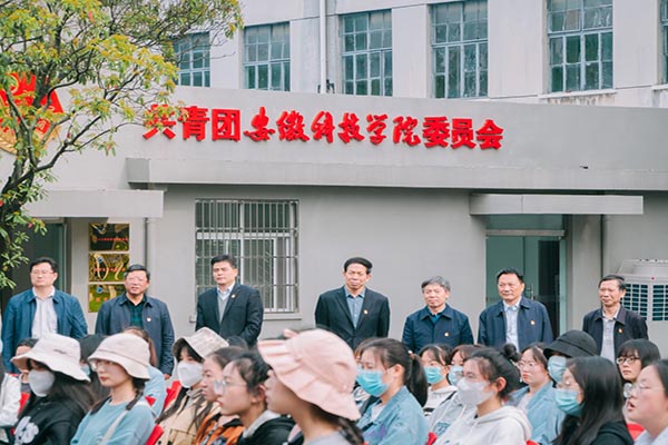 四月的安科校园春意盎然,绿树成荫,处处皆是欣欣向荣的繁盛景象。在红花绿植环簇的五四广场,“学党史、强信念、跟党走”的主题雕座在鲜艳的党旗的引领下显得格外庄重,熠熠生辉。